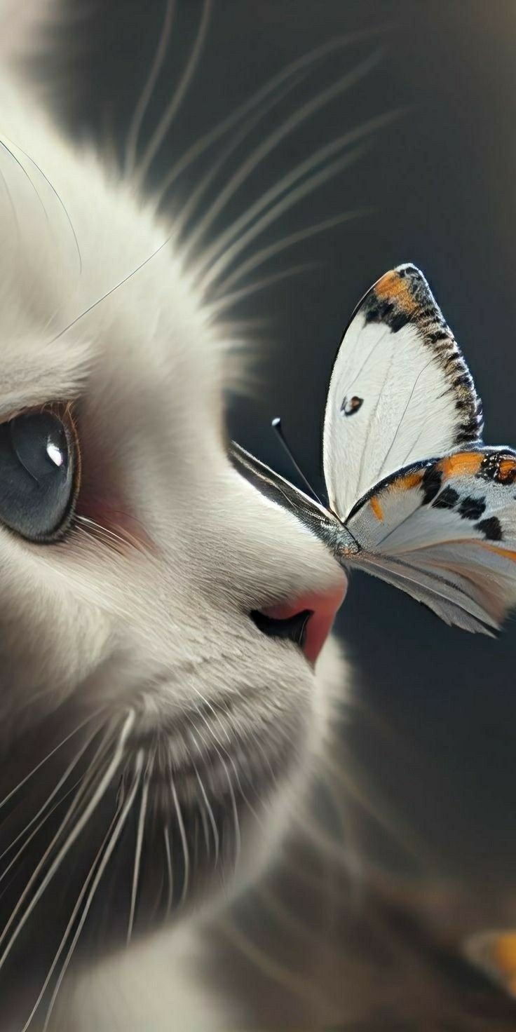 De compositie is zacht en ontroerend. De kat en de vlinder vormen samen een verstild beeld dat rust en kwetsbare schoonheid uitstraalt. Het geheel ademt sereniteit, zachtheid en een vleugje magie — precies wat dit onverwachte moment zo bijzonder maakt.